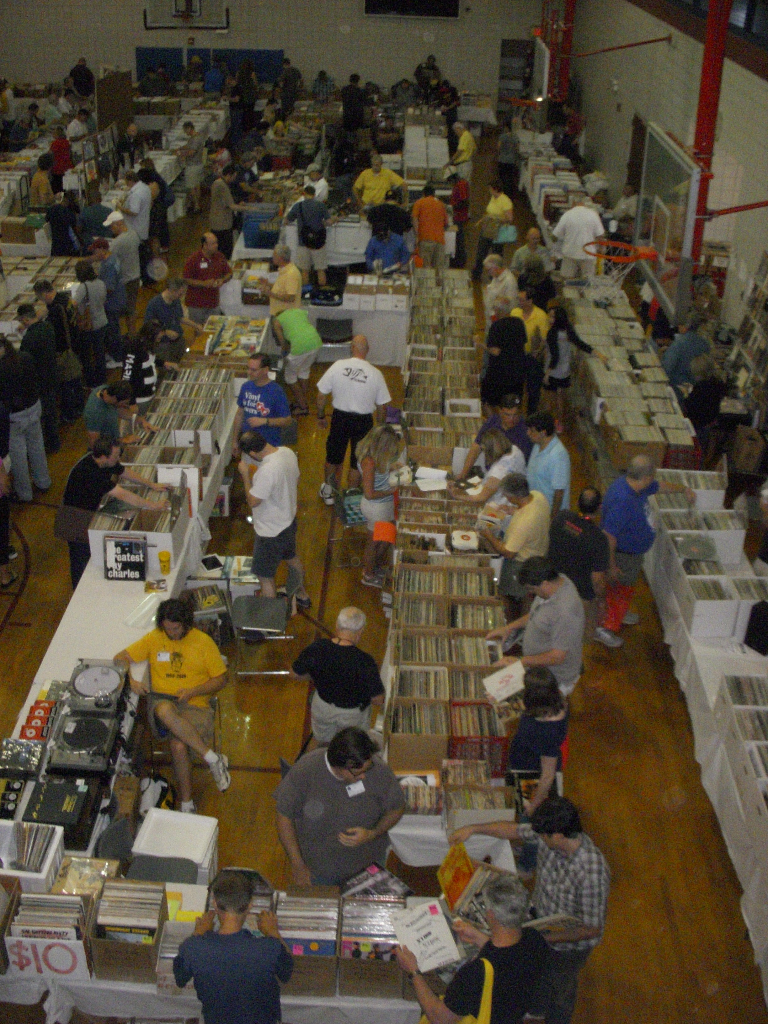 It’s not perfect but here’s a panoramic view of the record show with 3 different photos taken from the walking track above the floor. Maybe it gives you a feel for the view from above.